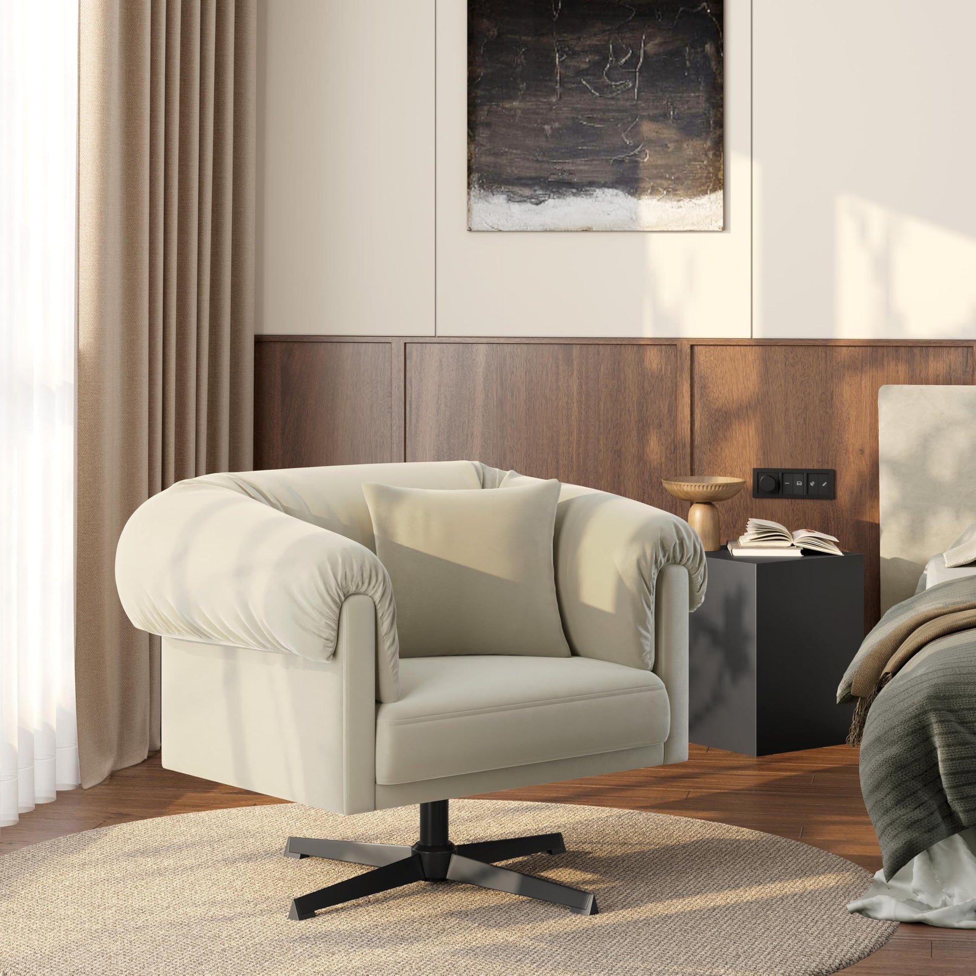 - Comfy & Stable: The velvet accent chair features thickly padded armrests and pillow, supported by a durable 360-degree swivel metal base, offering comfort and stability for an exceptional sitting experience
