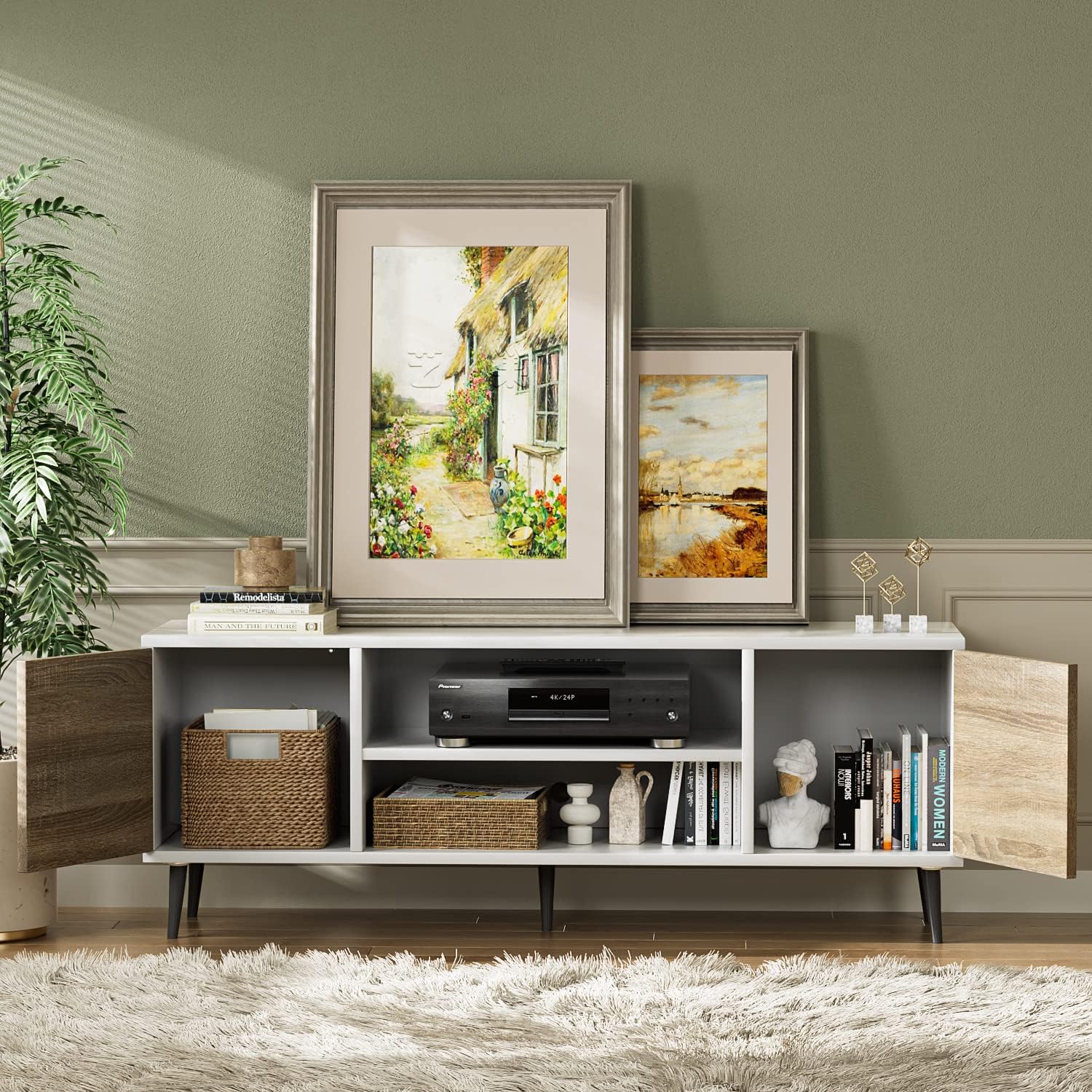 TV Stand for 65" Television, Entertainment Center with Two Storage Cabinets