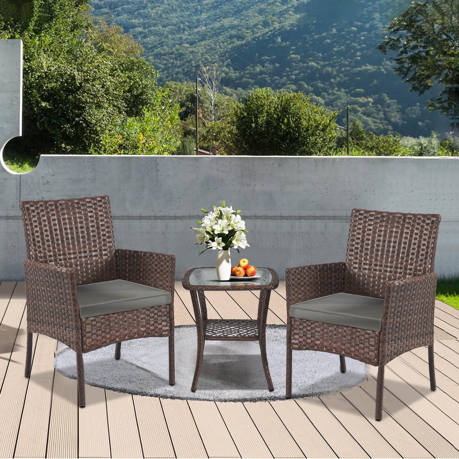 Garden Furniture Set 3 Pieces Patio Rattan Wicker Chairs,Patio Porch Outdoor Furniture Set