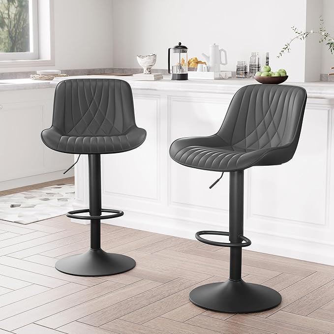 - Crafted with high-quality faux leather, thick sponge, SGS-3 Class gas rod, and durable metal. Each base features a non-slip rubber ring for quiet use and floor protection. Upgraded scratch-resistant finish keeps counter stools great