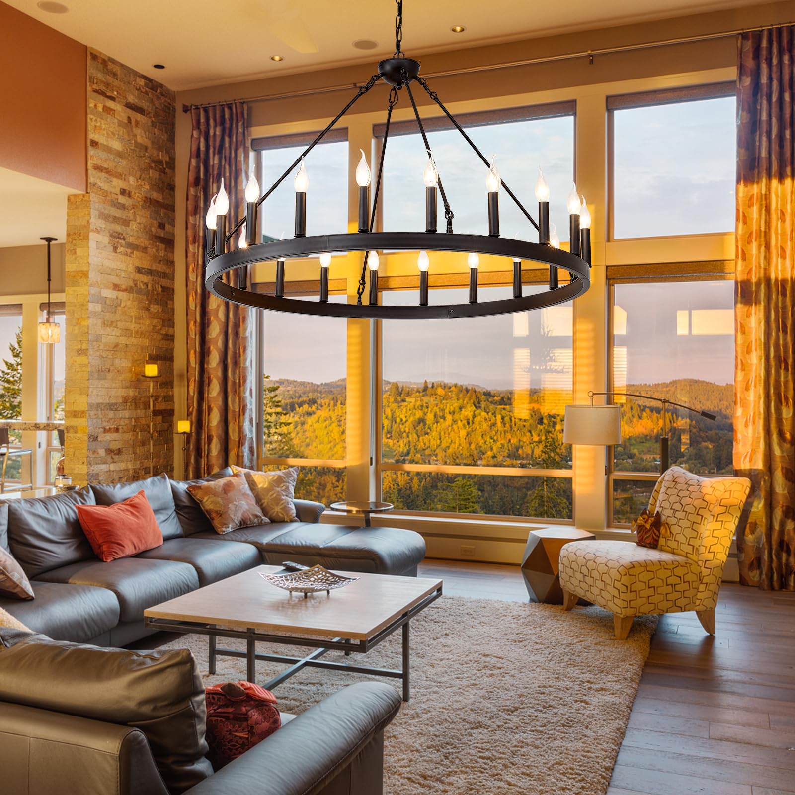 Black Wagon Wheel Chandelier 40 inch,20-Light Farmhouse Wagon Wheel